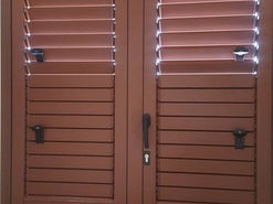 La persiana d'acciaio zincato preverniciato a lamelle orientabili si presta perfettamente nella sostituzione delle persiane di legno o di alluminio, fornendo un'ottima sicurezza contro le effrazioni oltre a mantenere un alto valore estetico. Le sue lamelle possono essere orientate fino a 90°, garantendo illuminazione, privacy e sicurezza. Il sistema costruttivo si basa sulla saldatura dei suoi elementi: ante, fasce, cerniere e cornici porta lamelle, così da mantenere nel tempoi valori strutturali dell'acciaio. La vernice in polveri di poliestere, dopo il pretrattamento, è applicata interamente sul prodotto assemblato, dando omogeneità e copertura totale alla superficie. Blocca è dotata di serratura con doppio gancio dentato a tre punti di chiusura, rostri, paletti, puntali e perni cerniere in acciaio inox. E' inoltre possibile una libera scelta dei colori, delle dimensioni e delle forme. Una semplice ma efficace idea, ha fatto nascere Blocca Mira Plus. All'interno del vano lamelle, verrà saldata una grata in acciaio che ne aumenterà la sicurezza inalterandone la visione estetica. - Blocca Mira persiana con lamelle orientabili da 70mm - Blocca Mira Plus persiana con lamelle orientabili da 7Omm e grata fissa interna - Resistenza all’effrazione: Classe 2 secondo UNI EN 1627 - Resistenza all’effrazione: Classe 3 secondo UNI EN 1627